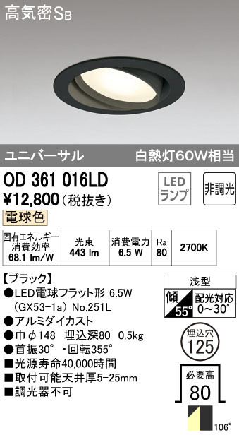 ODELIC ¥ª¡¼¥Ç¥ê¥Ã¥¯ LED ¥À¥¦¥ó¥é¥¤¥È OD361016LD