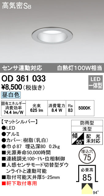 ODELIC ¥ª¡¼¥Ç¥ê¥Ã¥¯ LED ¥¨¥¯¥¹¥Æ¥ê¥¢¥é¥¤¥È OD361033