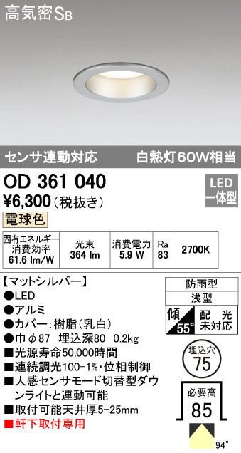 ODELIC ¥ª¡¼¥Ç¥ê¥Ã¥¯ LED ¥¨¥¯¥¹¥Æ¥ê¥¢¥é¥¤¥È OD361040