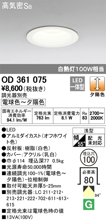 ODELIC ¥ª¡¼¥Ç¥ê¥Ã¥¯ ¥À¥¦¥ó¥é¥¤¥È OD361075