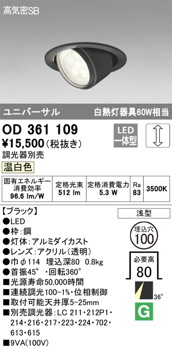 ODELIC ¥ª¡¼¥Ç¥ê¥Ã¥¯ ¥À¥¦¥ó¥é¥¤¥È OD361109
