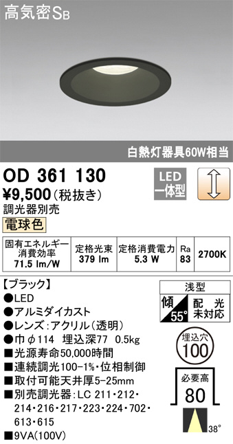ODELIC ¥ª¡¼¥Ç¥ê¥Ã¥¯ ¥À¥¦¥ó¥é¥¤¥È OD361130