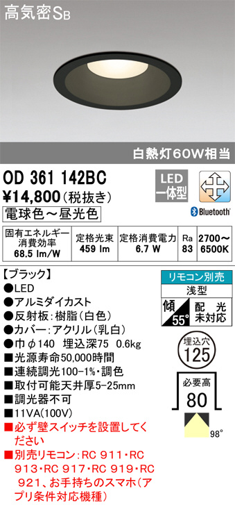ODELIC ¥ª¡¼¥Ç¥ê¥Ã¥¯ ¥À¥¦¥ó¥é¥¤¥È OD361142BC