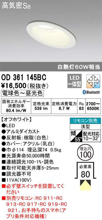 ODELIC ¥ª¡¼¥Ç¥ê¥Ã¥¯ ¥À¥¦¥ó¥é¥¤¥È OD361145BC