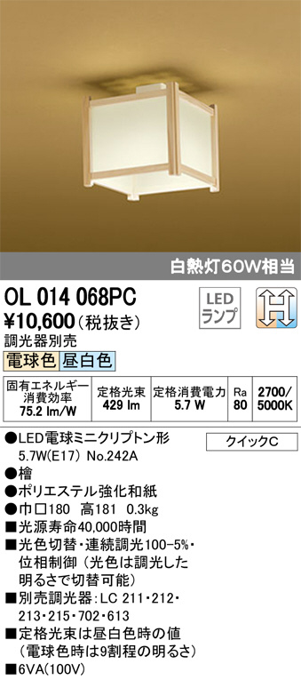 ODELIC ¥ª¡¼¥Ç¥ê¥Ã¥¯ ¾®·¿¥·¡¼¥ê¥ó¥°¥é¥¤¥È OL014068PC