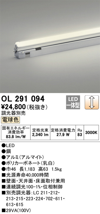 ODELIC ¥ª¡¼¥Ç¥ê¥Ã¥¯ ¼¼ÆâÍÑ´ÖÀܾÈÌÀ OL291094