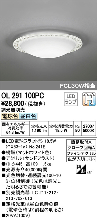 ODELIC ¥ª¡¼¥Ç¥ê¥Ã¥¯ ¾®·¿¥·¡¼¥ê¥ó¥°¥é¥¤¥È OL291100PC