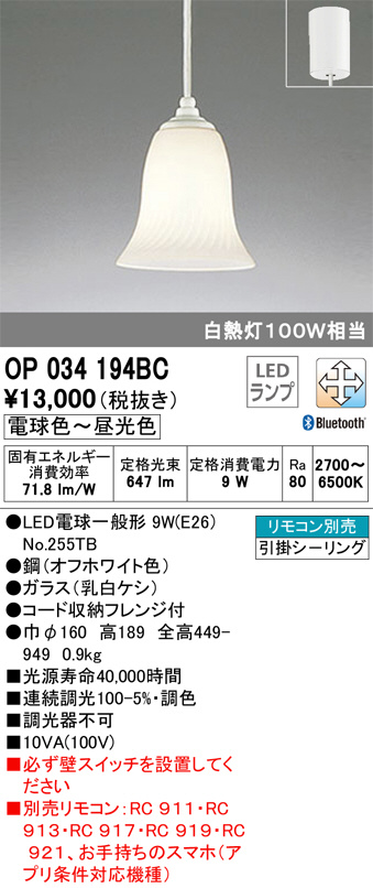ODELIC ¥ª¡¼¥Ç¥ê¥Ã¥¯ ¥Ú¥ó¥À¥ó¥È¥é¥¤¥È OP034194BC