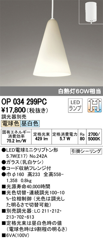 ODELIC ¥ª¡¼¥Ç¥ê¥Ã¥¯ ¥Ú¥ó¥À¥ó¥È¥é¥¤¥È OP034299PC