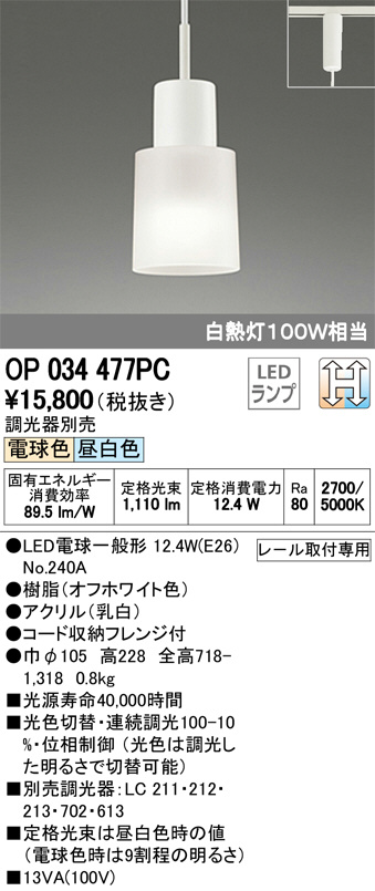ODELIC ¥ª¡¼¥Ç¥ê¥Ã¥¯ ¥Ú¥ó¥À¥ó¥È¥é¥¤¥È OP034477PC
