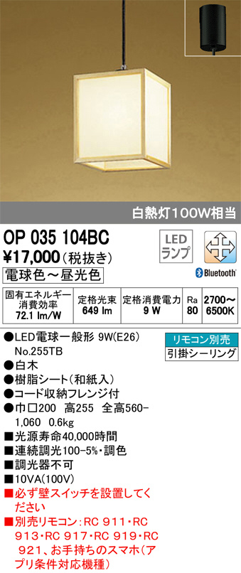 ODELIC ¥ª¡¼¥Ç¥ê¥Ã¥¯ ¥Ú¥ó¥À¥ó¥È¥é¥¤¥È OP035104BC