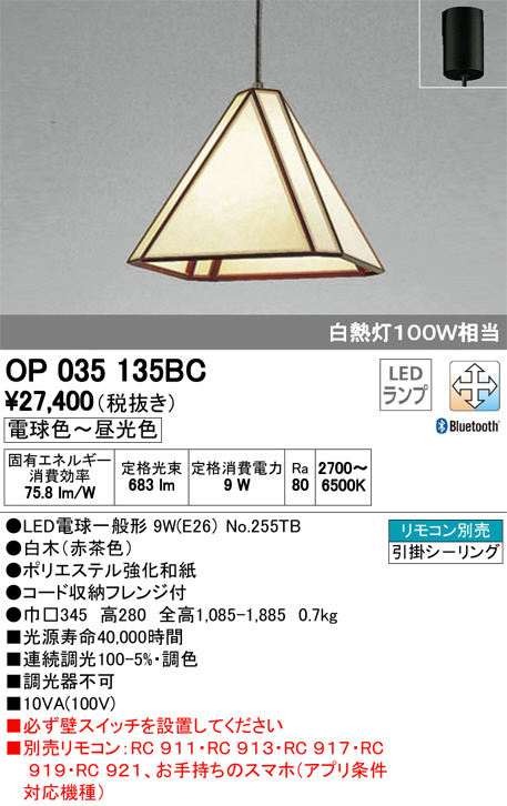 ODELIC ¥ª¡¼¥Ç¥ê¥Ã¥¯ ¥Ú¥ó¥À¥ó¥È¥é¥¤¥È OP035135BC