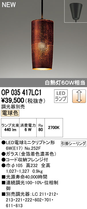 ODELIC ¥ª¡¼¥Ç¥ê¥Ã¥¯ ¥Ú¥ó¥À¥ó¥È¥é¥¤¥È OP035417LC1