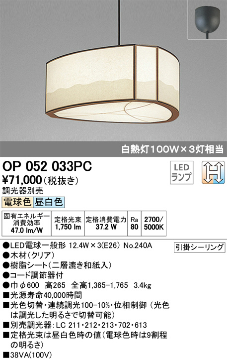 ODELIC ¥ª¡¼¥Ç¥ê¥Ã¥¯ ¥Ú¥ó¥À¥ó¥È¥é¥¤¥È OP052033PC