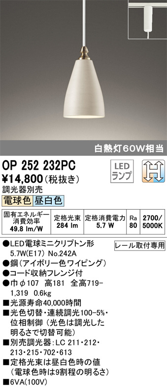 ODELIC ¥ª¡¼¥Ç¥ê¥Ã¥¯ ¥Ú¥ó¥À¥ó¥È¥é¥¤¥È OP252232PC