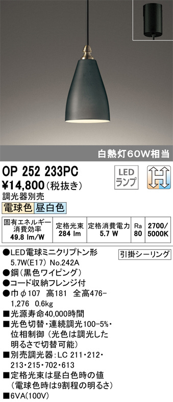 ODELIC ¥ª¡¼¥Ç¥ê¥Ã¥¯ ¥Ú¥ó¥À¥ó¥È¥é¥¤¥È OP252233PC