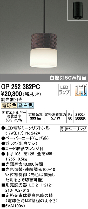 ODELIC ¥ª¡¼¥Ç¥ê¥Ã¥¯ ¥Ú¥ó¥À¥ó¥È¥é¥¤¥È OP252382PC