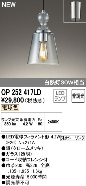 ODELIC ¥ª¡¼¥Ç¥ê¥Ã¥¯ ¥Ú¥ó¥À¥ó¥È¥é¥¤¥È OP252417LD