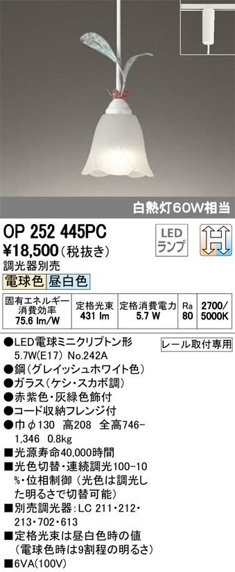 ODELIC ¥ª¡¼¥Ç¥ê¥Ã¥¯ ¥Ú¥ó¥À¥ó¥È¥é¥¤¥È OP252445PC