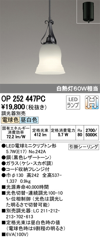 ODELIC ¥ª¡¼¥Ç¥ê¥Ã¥¯ ¥Ú¥ó¥À¥ó¥È¥é¥¤¥È OP252447PC