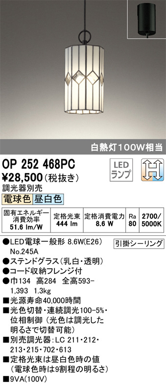 ODELIC ¥ª¡¼¥Ç¥ê¥Ã¥¯ ¥Ú¥ó¥À¥ó¥È¥é¥¤¥È OP252468PC