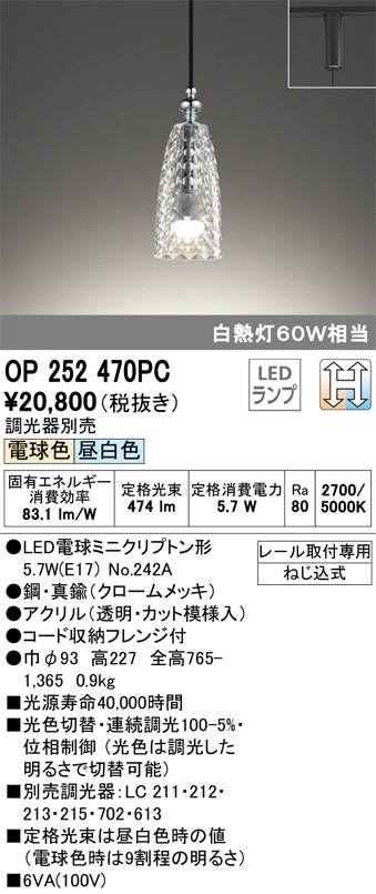 ODELIC ¥ª¡¼¥Ç¥ê¥Ã¥¯ ¥Ú¥ó¥À¥ó¥È¥é¥¤¥È OP252470PC