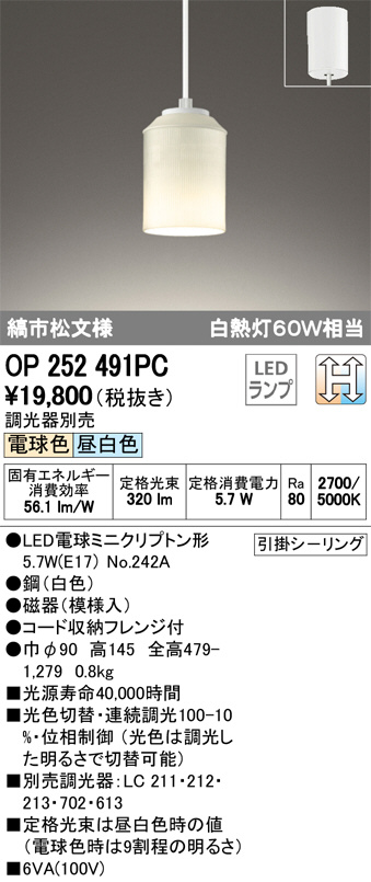 ODELIC ¥ª¡¼¥Ç¥ê¥Ã¥¯ ¥Ú¥ó¥À¥ó¥È¥é¥¤¥È OP252491PC