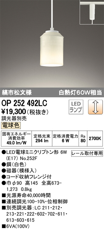 ODELIC ¥ª¡¼¥Ç¥ê¥Ã¥¯ ¥Ú¥ó¥À¥ó¥È¥é¥¤¥È OP252492LC
