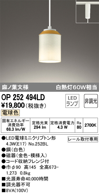 ODELIC ¥ª¡¼¥Ç¥ê¥Ã¥¯ ¥Ú¥ó¥À¥ó¥È¥é¥¤¥È OP252494LD