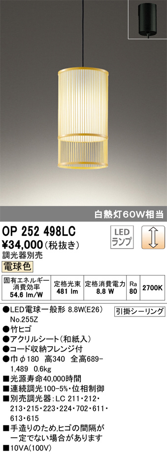 ODELIC ¥ª¡¼¥Ç¥ê¥Ã¥¯ ¥Ú¥ó¥À¥ó¥È¥é¥¤¥È OP252498LC
