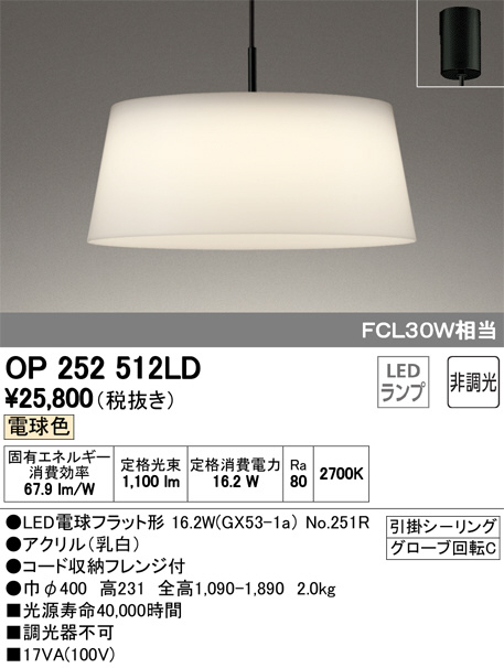 ODELIC ¥ª¡¼¥Ç¥ê¥Ã¥¯ ¥Ú¥ó¥À¥ó¥È¥é¥¤¥È OP252512LD