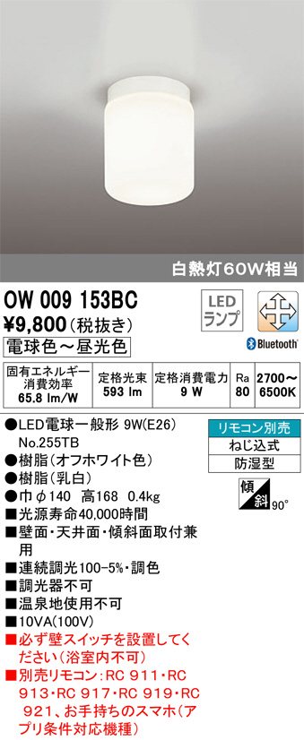 ODELIC ¥ª¡¼¥Ç¥ê¥Ã¥¯ ¥Ð¥¹¥ë¡¼¥à¥é¥¤¥È OW009153BC