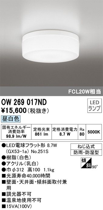 ODELIC ¥ª¡¼¥Ç¥ê¥Ã¥¯ ¥Ð¥¹¥ë¡¼¥à¥é¥¤¥È OW269017ND