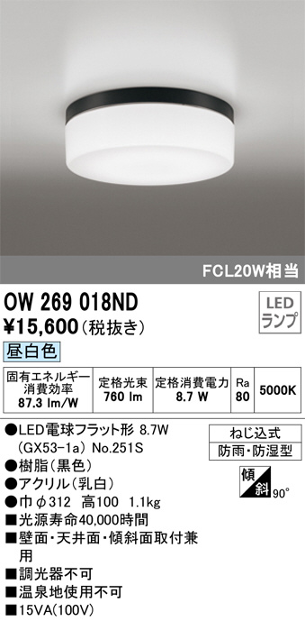 ODELIC ¥ª¡¼¥Ç¥ê¥Ã¥¯ ¥Ð¥¹¥ë¡¼¥à¥é¥¤¥È OW269018ND