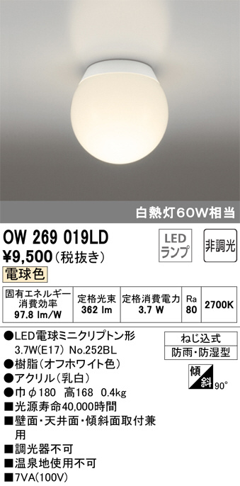 ODELIC ¥ª¡¼¥Ç¥ê¥Ã¥¯ ¥Ð¥¹¥ë¡¼¥à¥é¥¤¥È OW269019LD