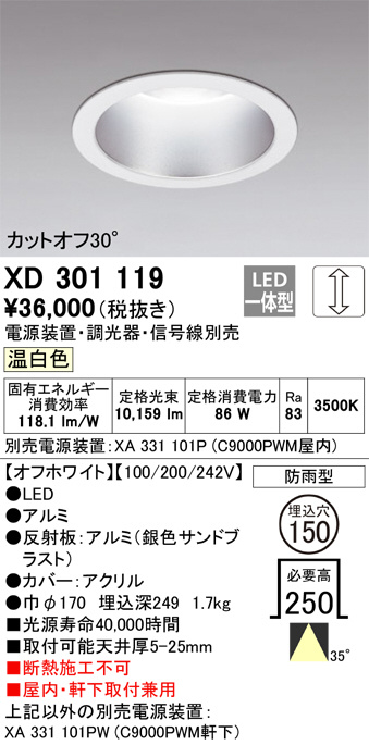 ODELIC ¥ª¡¼¥Ç¥ê¥Ã¥¯ ¥À¥¦¥ó¥é¥¤¥È XD301119