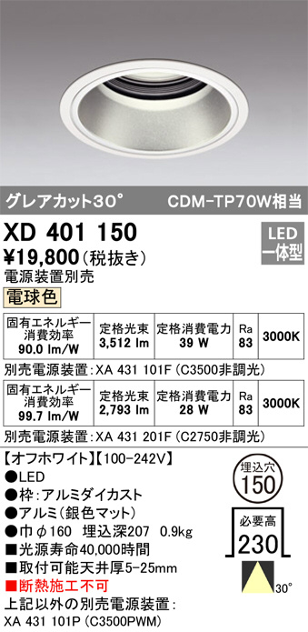 ODELIC ¥ª¡¼¥Ç¥ê¥Ã¥¯ ¥À¥¦¥ó¥é¥¤¥È XD401150