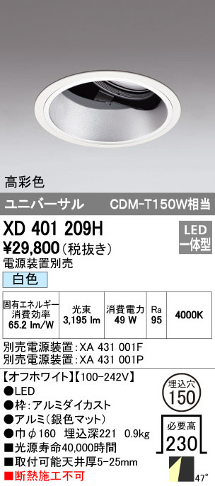 ODELIC ¥ª¡¼¥Ç¥ê¥Ã¥¯ ¥À¥¦¥ó¥é¥¤¥È XD401209H
