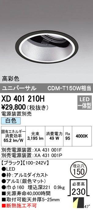 ODELIC ¥ª¡¼¥Ç¥ê¥Ã¥¯ ¥À¥¦¥ó¥é¥¤¥È XD401210H