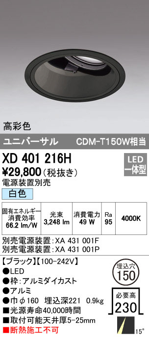 ODELIC ¥ª¡¼¥Ç¥ê¥Ã¥¯ ¥À¥¦¥ó¥é¥¤¥È XD401216H
