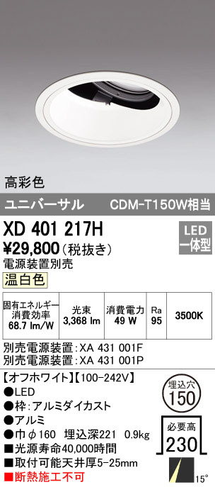 ODELIC ¥ª¡¼¥Ç¥ê¥Ã¥¯ ¥À¥¦¥ó¥é¥¤¥È XD401217H