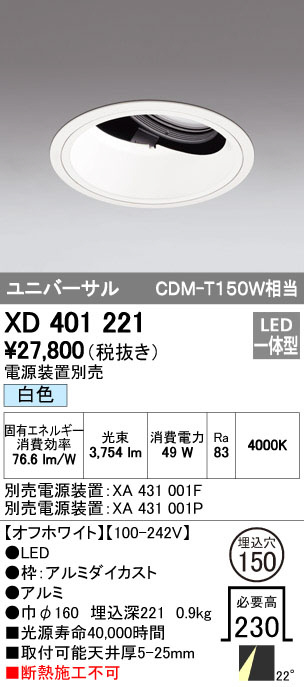 ODELIC ¥ª¡¼¥Ç¥ê¥Ã¥¯ ¥À¥¦¥ó¥é¥¤¥È XD401221