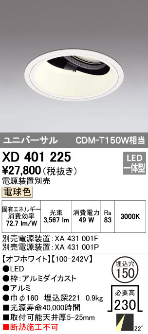 ODELIC ¥ª¡¼¥Ç¥ê¥Ã¥¯ ¥À¥¦¥ó¥é¥¤¥È XD401225