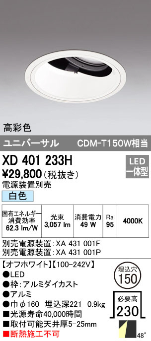 ODELIC ¥ª¡¼¥Ç¥ê¥Ã¥¯ ¥À¥¦¥ó¥é¥¤¥È XD401233H