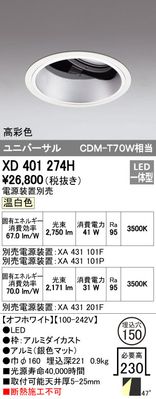 ODELIC ¥ª¡¼¥Ç¥ê¥Ã¥¯ ¥À¥¦¥ó¥é¥¤¥È XD401274H