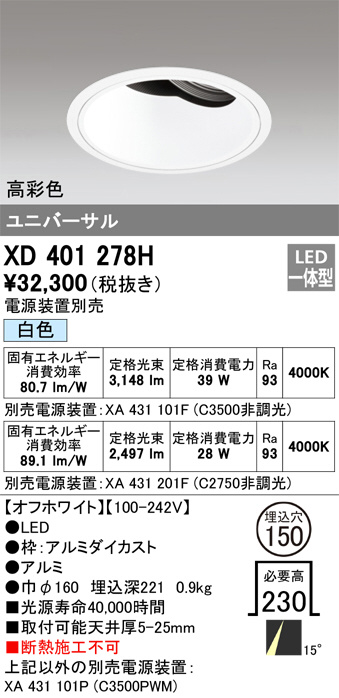 ODELIC ¥ª¡¼¥Ç¥ê¥Ã¥¯ ¥À¥¦¥ó¥é¥¤¥È XD401278H