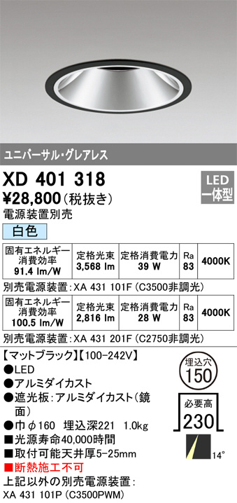 ODELIC ¥ª¡¼¥Ç¥ê¥Ã¥¯ ¥À¥¦¥ó¥é¥¤¥È XD401318