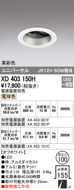 ODELIC ¥ª¡¼¥Ç¥ê¥Ã¥¯ ¥À¥¦¥ó¥é¥¤¥È XD403150H