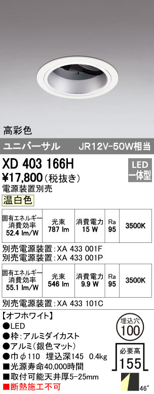 ODELIC ¥ª¡¼¥Ç¥ê¥Ã¥¯ ¥À¥¦¥ó¥é¥¤¥È XD403166H