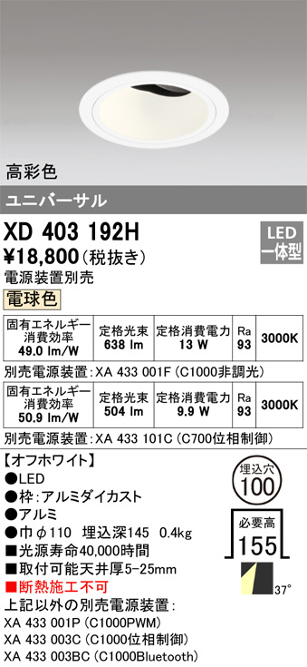 ODELIC ¥ª¡¼¥Ç¥ê¥Ã¥¯ ¥À¥¦¥ó¥é¥¤¥È XD403192H